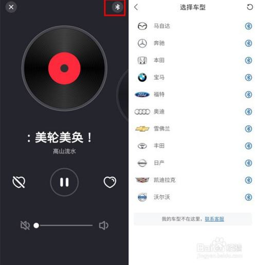 点击右上角蓝牙图标,选择车型,根据提示进行连接即可。